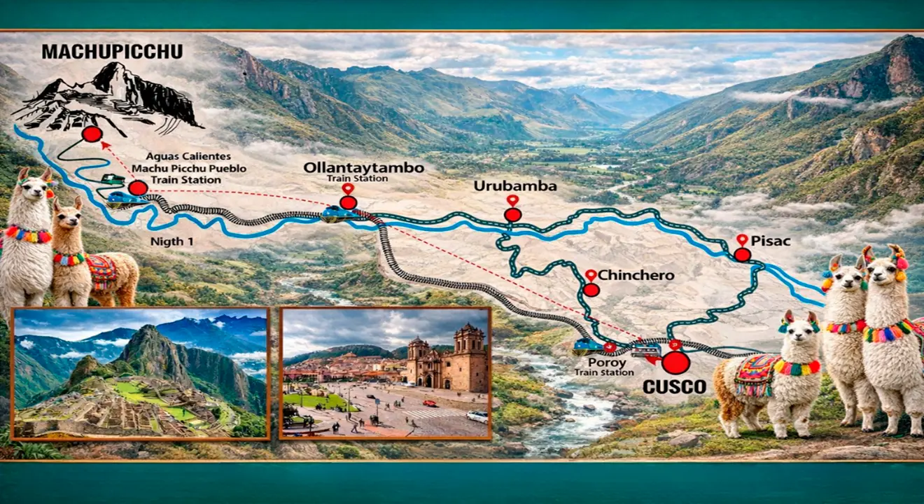 Aguas Calientes, also known as Machu Picchu Town, is the ideal starting point to explore the famous Inca citadel. Beyond being just a stopover, this charming town offers nearby attractions such as waterfalls, hot springs, viewpoints, artisan markets, and museums, as well as impressive views of the Urubamba River and the surrounding mountains.