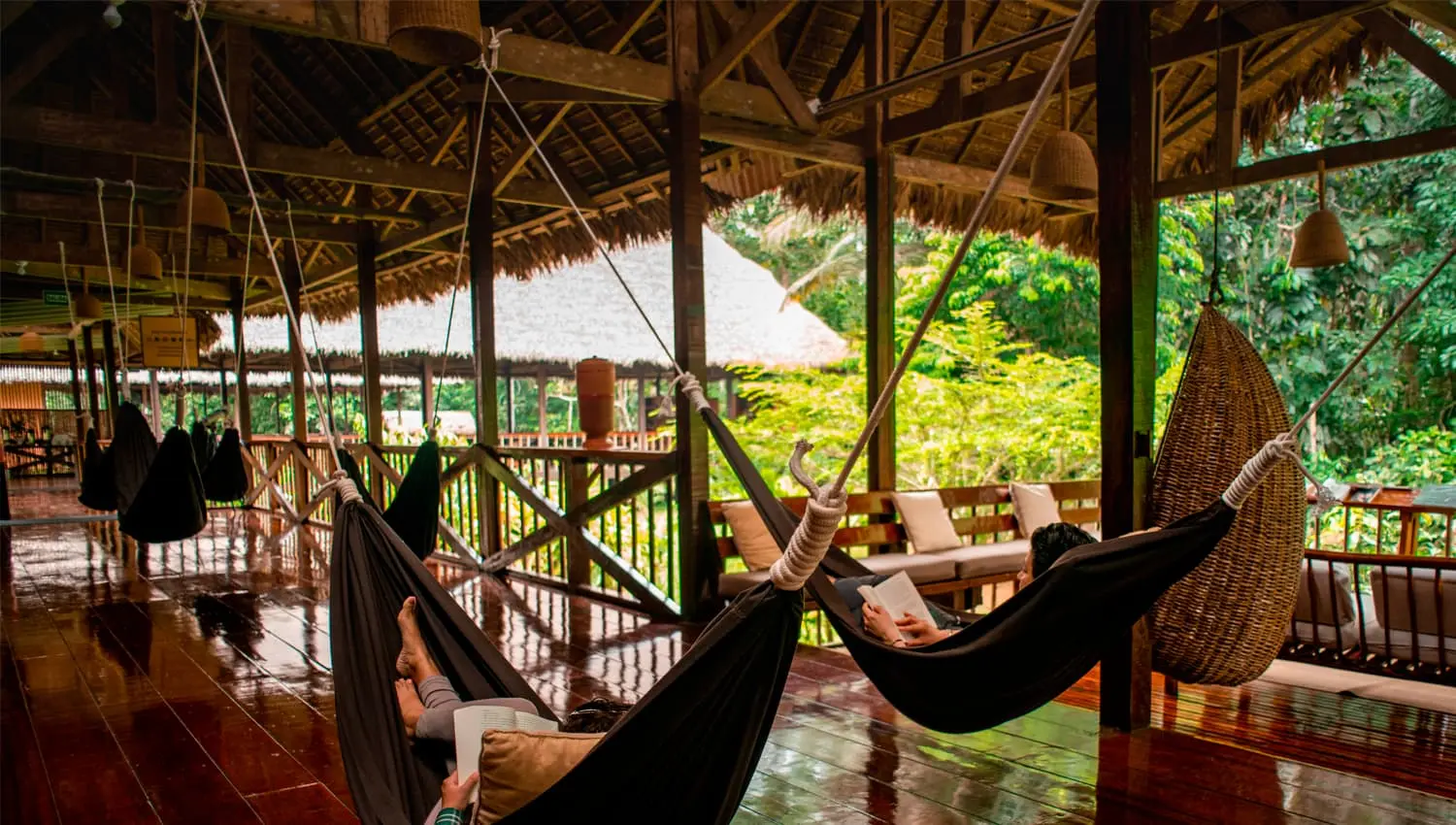 Venture further into the forest to visit Lake Sachavacayoc, short trip downriver by boat, forest trail to lake, observe birdlife and wildlife such as black caiman and green anaconda, paddle across lake, return to Ecolodge in the afternoon, relax or take a dip in Gallocunca stream, get to know other Ecolodge guests in the bar and lounge.