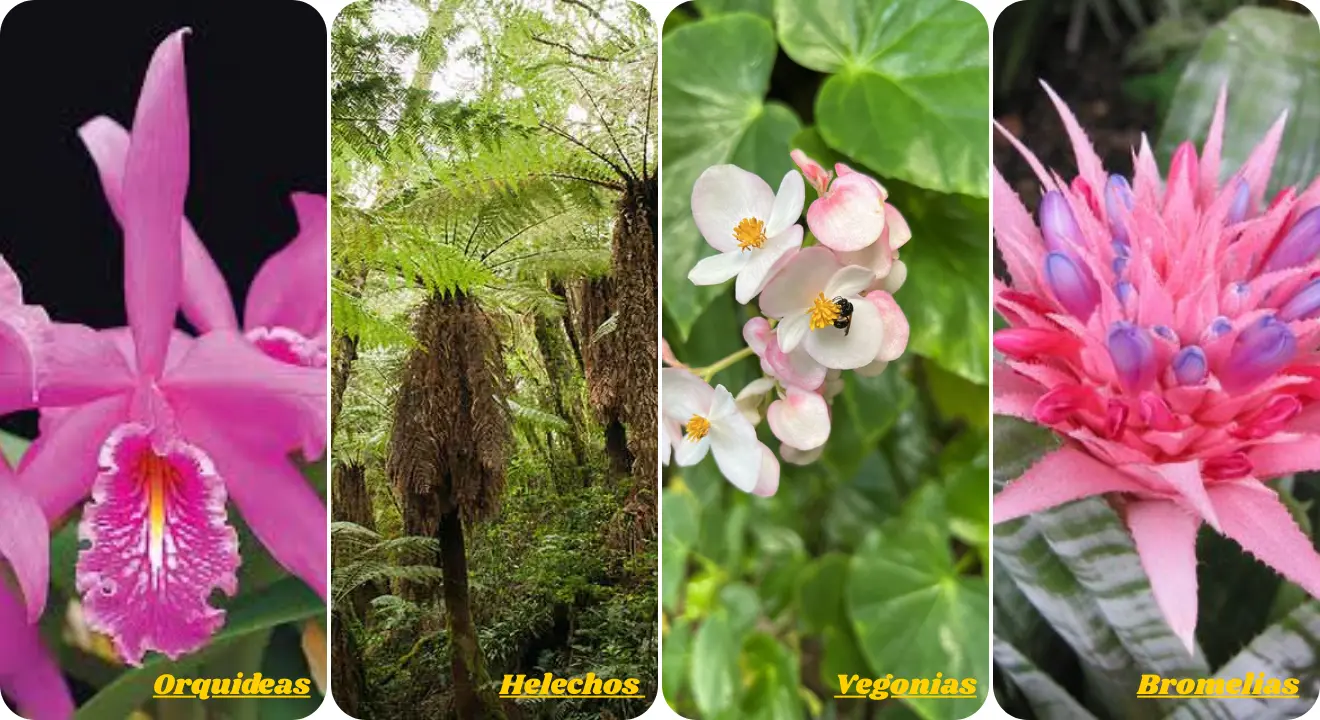 • Wild orchids, bromeliads, and begonias, especially visible during the rainy season.