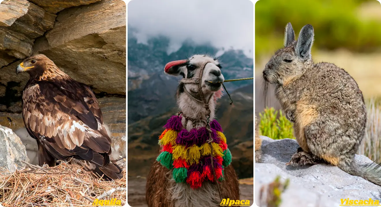 Condors and Andean birds: Flying over the nearby canyons and peaks, it is possible to spot condors, eagles, and other birds of prey dominating the sky. Their majestic flight adds a magical touch to the landscape.